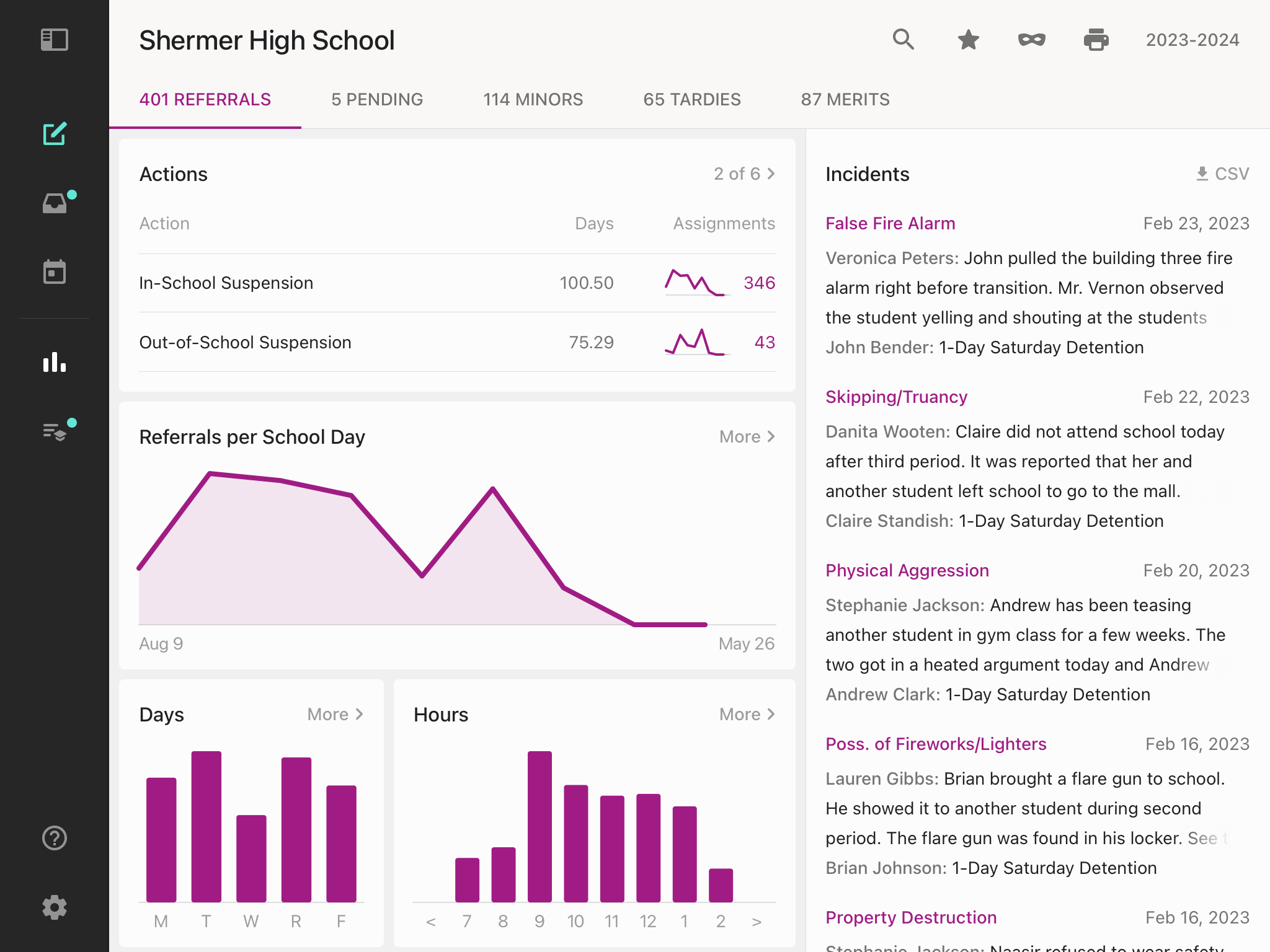 Incidents+ breaks the endless cycle of paperwork so you can focus on making the best decisions for your students at a time when those decisions matter more than ever. Every step of the referral process has been carefully reconsidered to deliver a super-efficient reporting system that dramatically reduces the time you spend responding to student conduct issues.