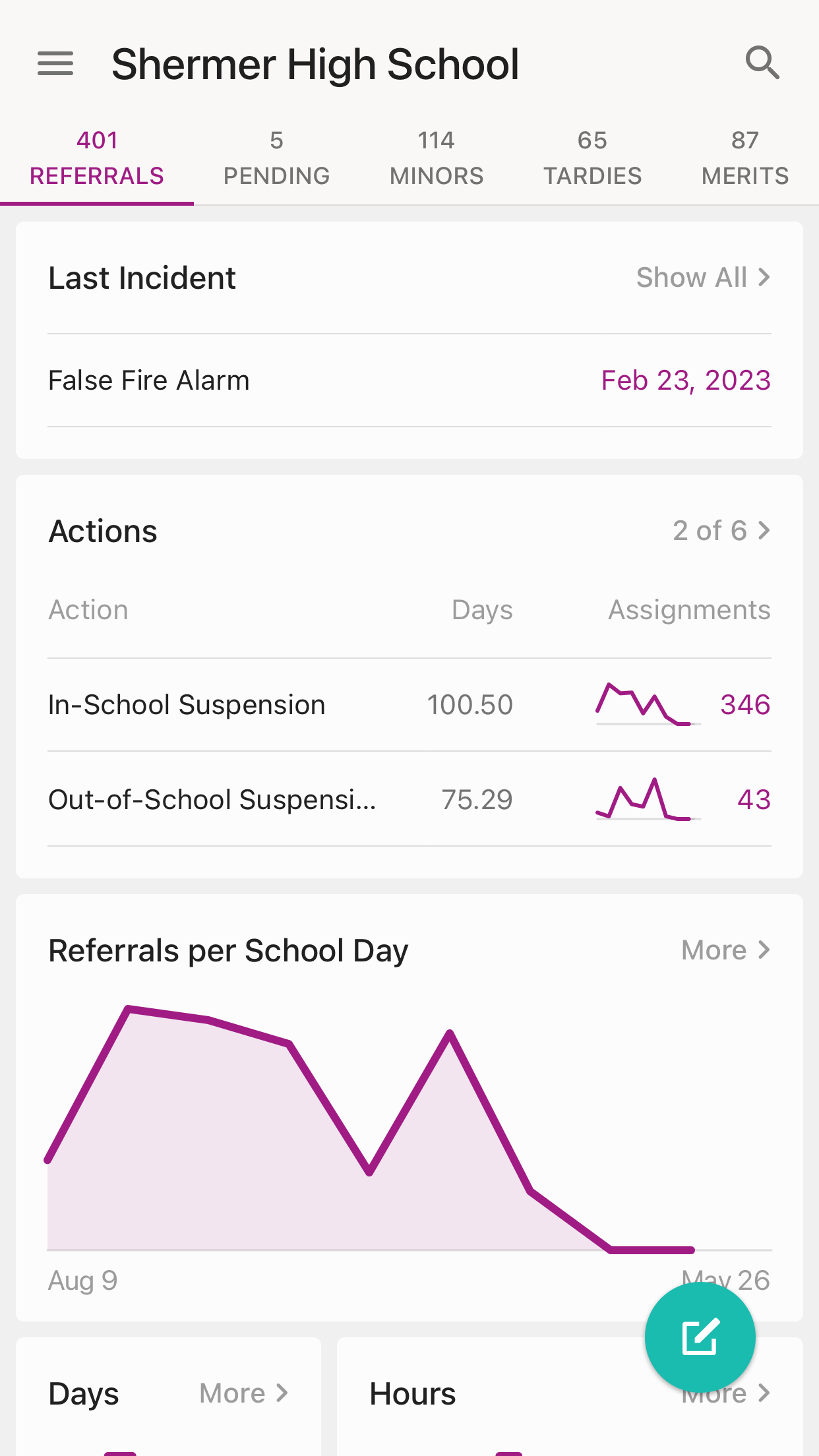 Student conduct is bigger than office referrals. Incidents+ gives you a more complete understanding of student conduct on your campus. Extend your view of student behavior into the classroom with minor incidents, minimize disruption from late-arriving students with tardies, recognize positive student behavior with merits, and capture a more comprehensive picture of your students and campus with custom incidents.